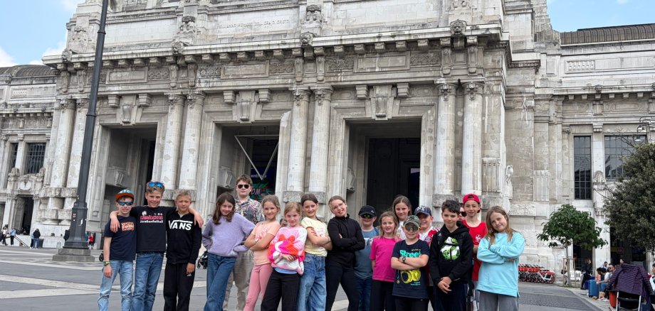 Nach einer ruhigen Nacht und einem turbulenten Morgen haben wir im Ostello gefrühstückt und unsere Lieder geprobt. Dann mussten wir zum Zug rennen, weil Frau Hüther vergeblich nach ihrer Lederjacke gesucht hat. Aber zum Glück haben wir es gerade noch rechtzeitig geschafft (Anmerkung: Raimonda 14/22 für die Lösung des Rätsels fragen Sie die Begleitpersonen oder den Automaten ) und den Zug nach Mailand erwischt. Nach einem Zwischenstopp auf dem riesigen Bahnhof in Mailand (Raimonda Stein), ging es weiter nach Pescara. Als wir zum ersten Mal das Meer und die Palmen („Das sind Palmen, Bro!!!“) sehen konnten, waren alle ganz aufgeregt und begeistert. Von Pescara ging es dann auf die letzte Etappe mit dem Elektrobus nach Montesilvano. Während Frau Vollstedt und Frau Hüther im Hotel eincheckten, sind wir zum ersten Mal an den Strand gelaufen. Anschließend haben wir uns im Zimmer eingerichtet. Zum Abendessen gab es im Hotel Nudeln mit Tomatensoße und Parmesan und noch leckeren Nachtisch. Obwohl wir dann schon sehr müde waren und es auch schon spät war, haben wir noch unsere Tagebücher ausgefüllt und uns auf unseren ersten Schultag in Italien vorbereitet. Dann haben wir uns bettfertig gemacht und sind sofort eingeschlafen.
